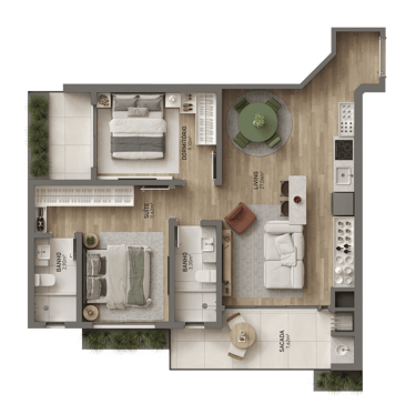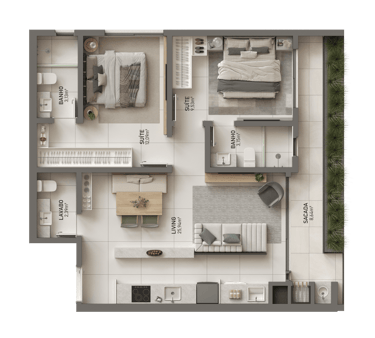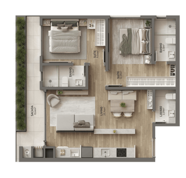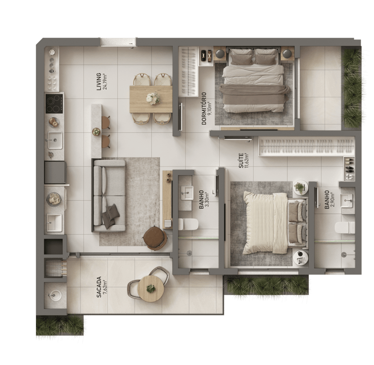 🟢 Plantas com 2 suítes ou 1 suíte + 1 dormitório