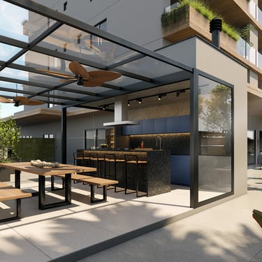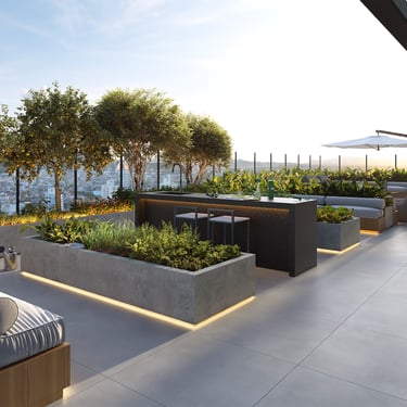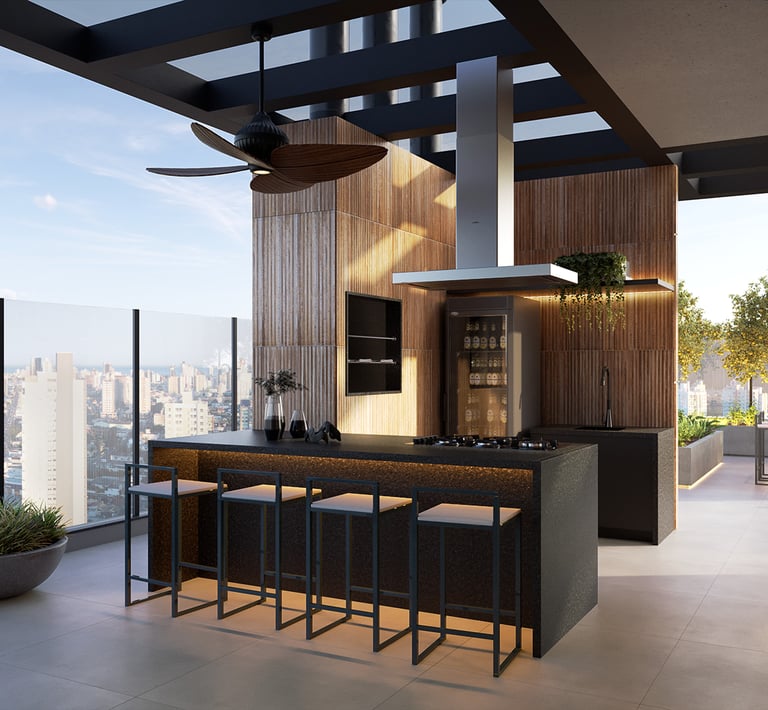 🟢 Mais de 1.800 m² de lazer, incluindo: piscinas, academia, espaço gourmet, rooftop, coworking e minimercado